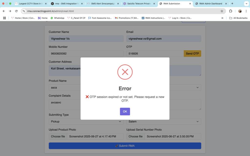 You are about to reopen RMA-2025-5675 (currently Failed). This will set it back to Under Process and make all fields editable again.