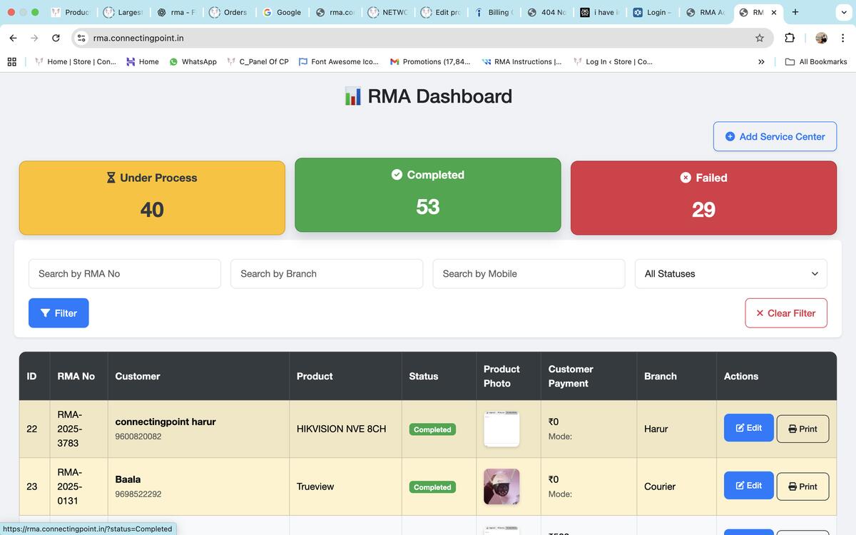 RMA Sheet